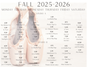 Check out the schedule of all dance styles which we instruct to promote poise, passion and a love for dance.